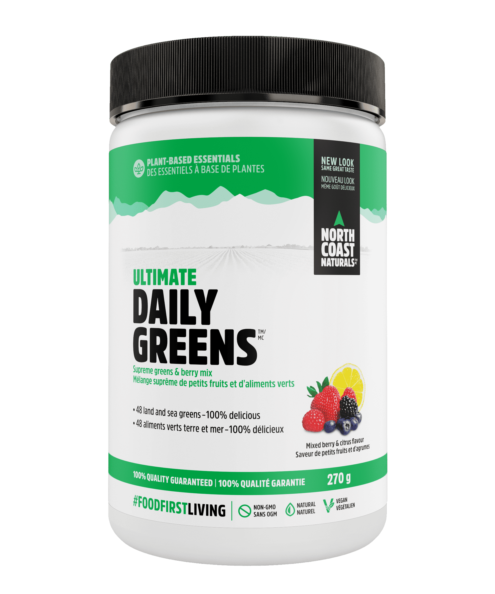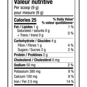 – Trái cây và Berries Blend 1,810 mg: Bột nước chanh, Acerola Berry, Chiết xuất hạt nho, Dứa, Đu đủ, Tart Cherry, Gooseberry Extract Hữu cơ, Saskatoon Berry/Canadian Blueberry, Trái cây hữu cơ (Táo, Maqui Berry, Nho đen, Lựu, Xoài, Việt quất, Bột nước ép nho, Sơ ri, Dâu tây, Acai Berry, Nam việt quất, Mâm xôi, Goji Berry, Camu Camu).